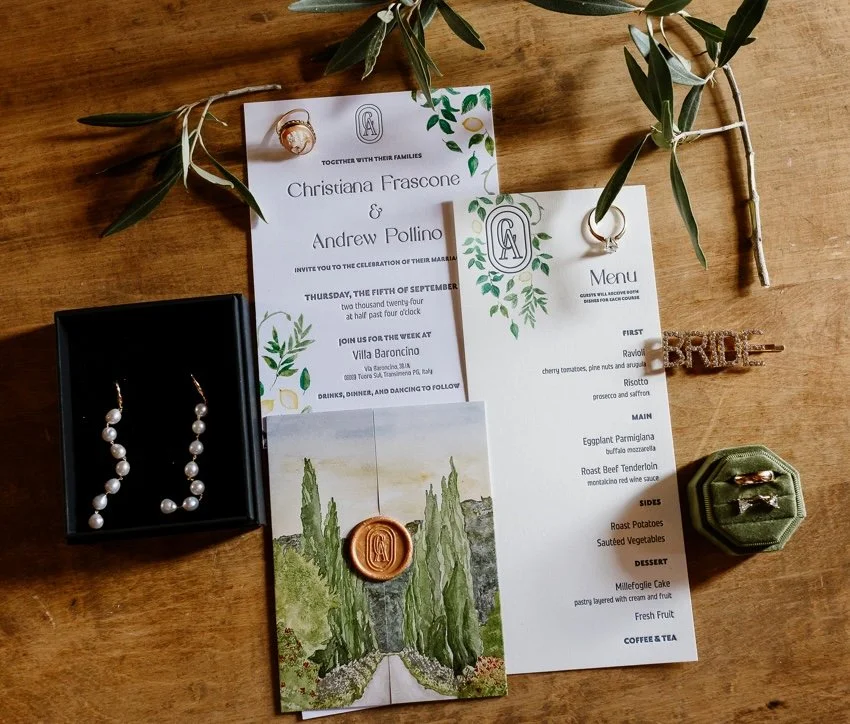 Invitation Suite & Day of Paper | Linen Banner | Hand Painted Watercolor | Custom Monogram